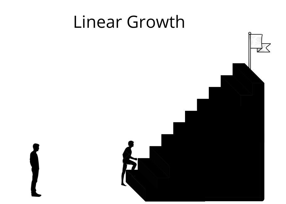 People often think about progress in a linear way, a ladder-like progression towards your ultimate goals. You reach one milestone of a certain magnitude, and the next one you set tends to be double the size. For example, you would reach a net worth of a million dollars and then think about how to make your next million.